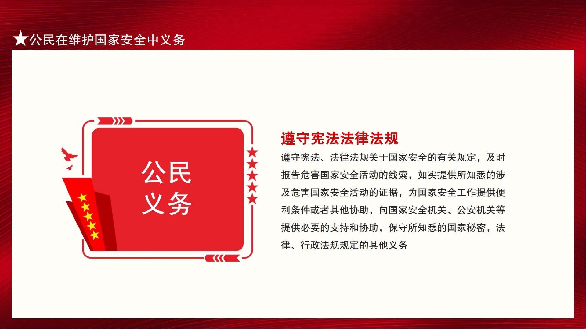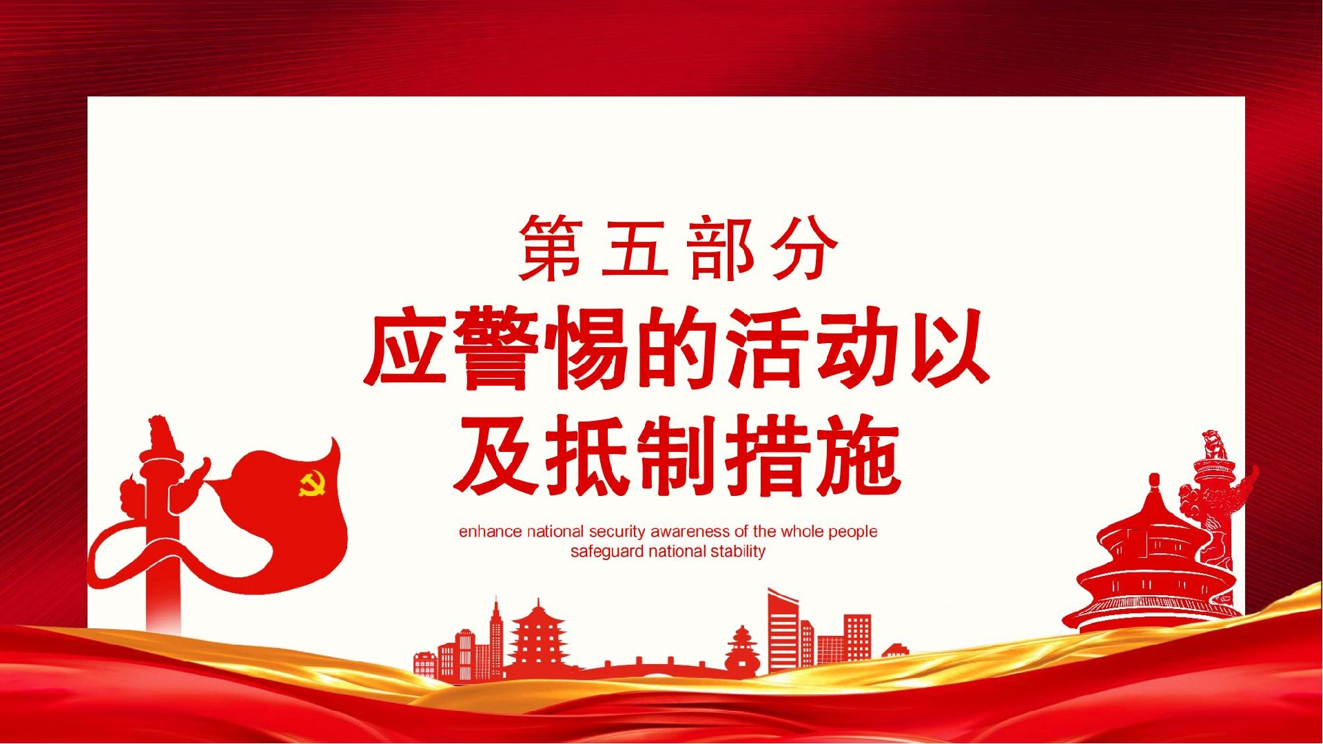 值此第九個全民國家安全教育日來臨之際,作為中國公民,我們更應(yīng)積極加強(qiáng)國家安全教育,國家安全由你我共筑。使關(guān)心國家安全、維護(hù)國家安全成為思想共識和行動自覺。